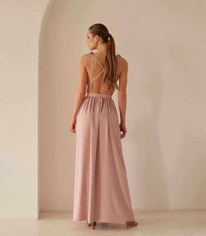 Ontmoet Cara, ons iconische tweedelige dat sinds het begin een bestseller is geweest. Iedereen praat over deze jurk op bruiloften, bruidsmeisjes zijn er helemaal weg van. Als je naar een elegant evenement gaat, is deze jurk iets voor jou. De riemen aan de achterkant zullen iedereen betoveren.