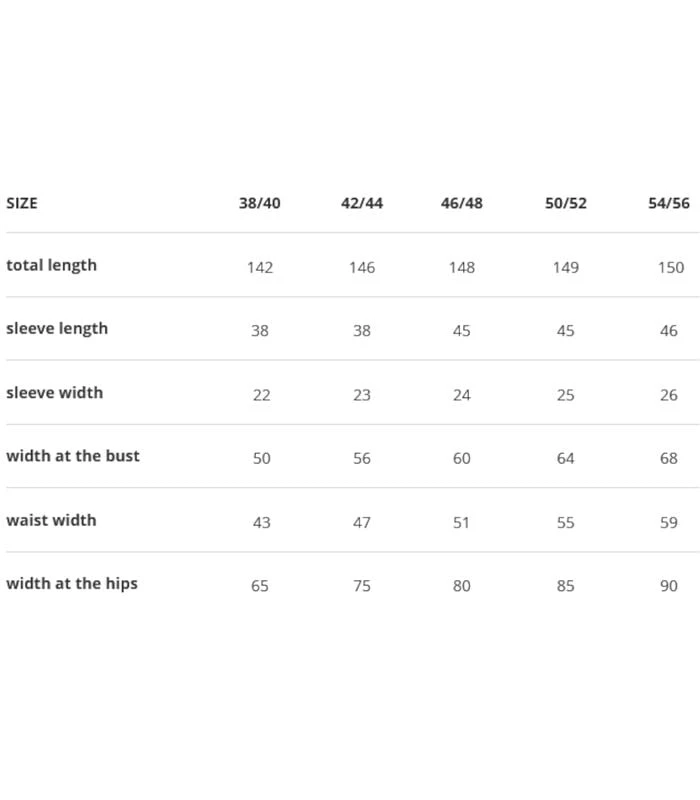 | Maat | 38/40, 42/44, 46/48, 50/52, 54/56 |
