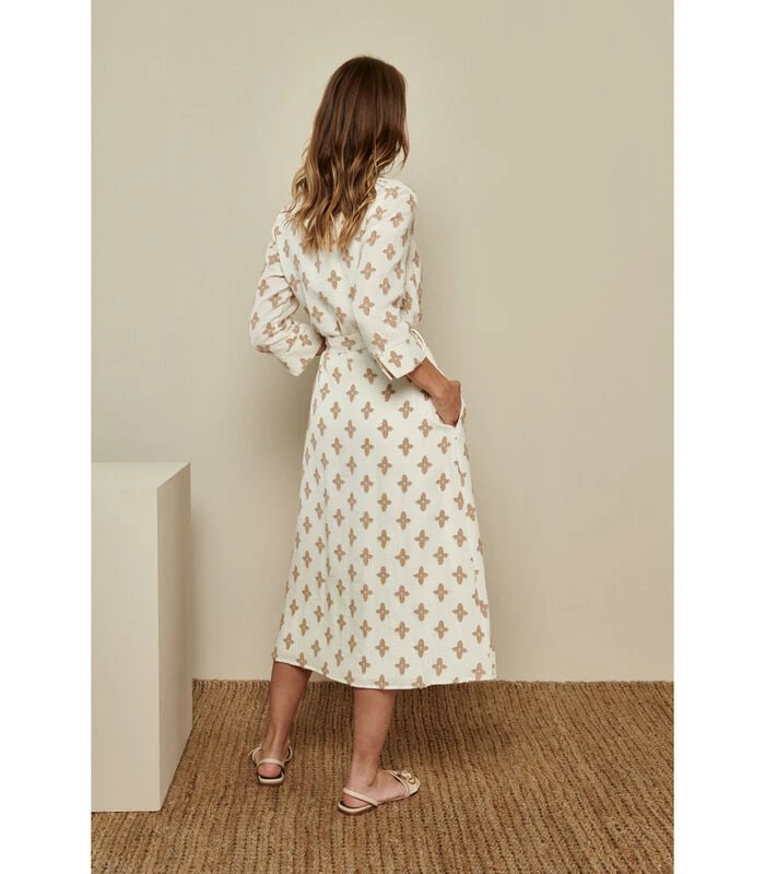 Ecru Midi-jurk Met Bi-color Jacquard Motief