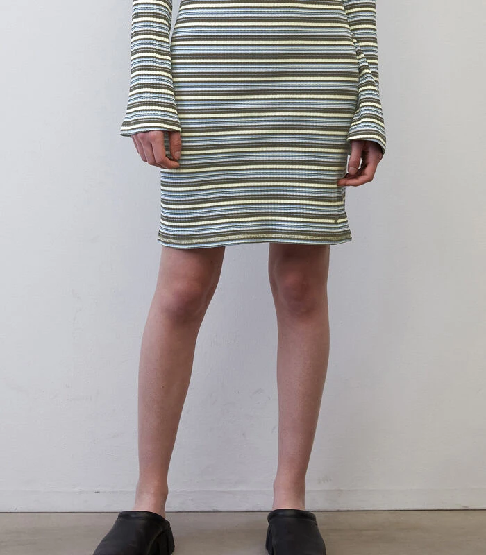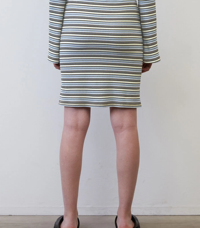 Prachtig gestreepte jersey rok! De comfortabele stof zorgt dat het item heerlijk zit en is perfect voor nauwsluitende kledingstukken. De korte rok is gemaakt van een hoogwaardige, elastische mix met organic cotton en heeft een elastische band. Het handige, gemakkelijk aan te trekken model zonder sluiting is niet gevoerd.
