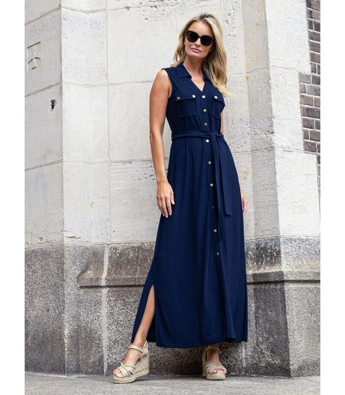 SANTINA is een concentraat van elegante allure en perfecte glamour. Een chique versie van een lange navy jurk die je doet dromen.