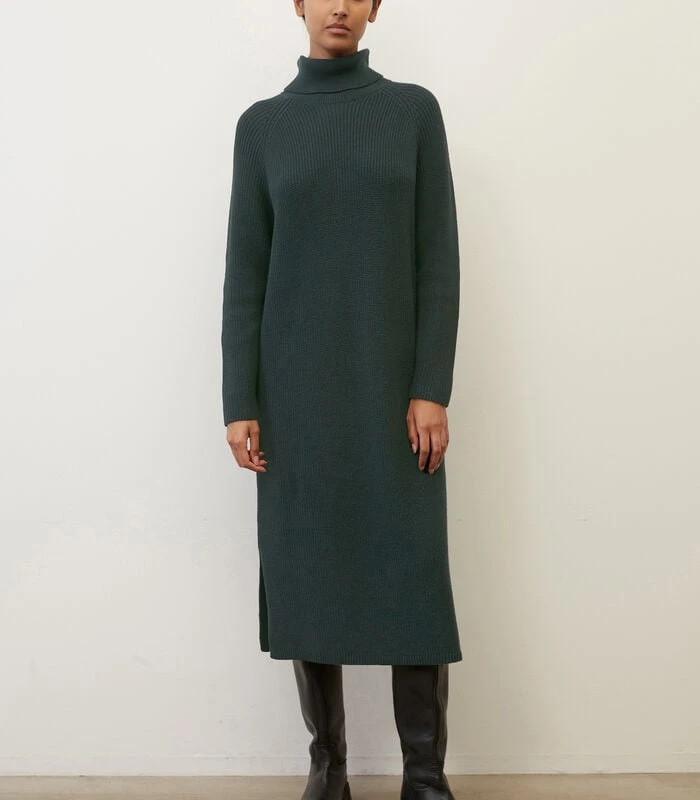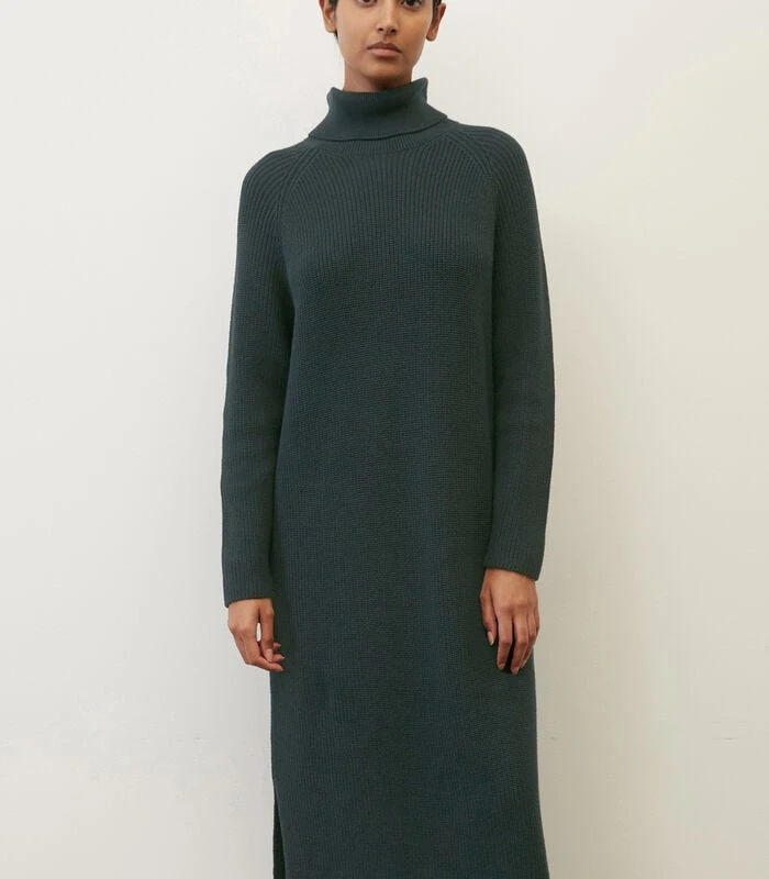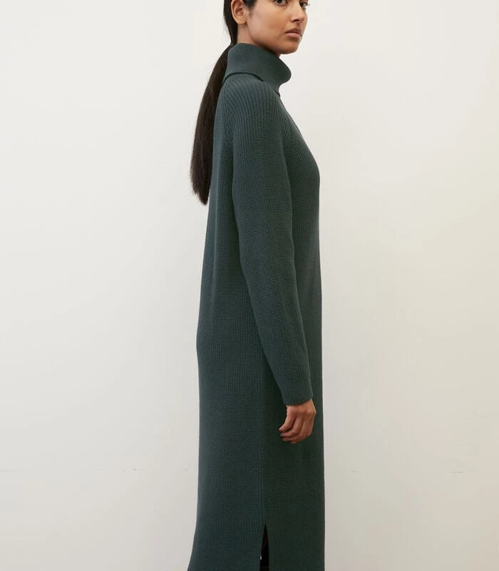 Big fashion love: gebreide jurken! Relaxed, met aangename pasvorm en hoog draagcomfort. Het model van compact, zwaar en zuiver biologisch katoen heeft een patroon van halve patentsteken en overtuigt met een casual loose fit. Met turtleneck, sportieve raglanmouwen en hoge zijsplitten die bij het lopen voor een zwierig gevoel zorgen. De jurk is een echte allrounder en kan op allerlei manieren worden gecombineerd tot de meest uiteenlopende looks – sportief met sneakers, elegant met high heels of casual met loafers.