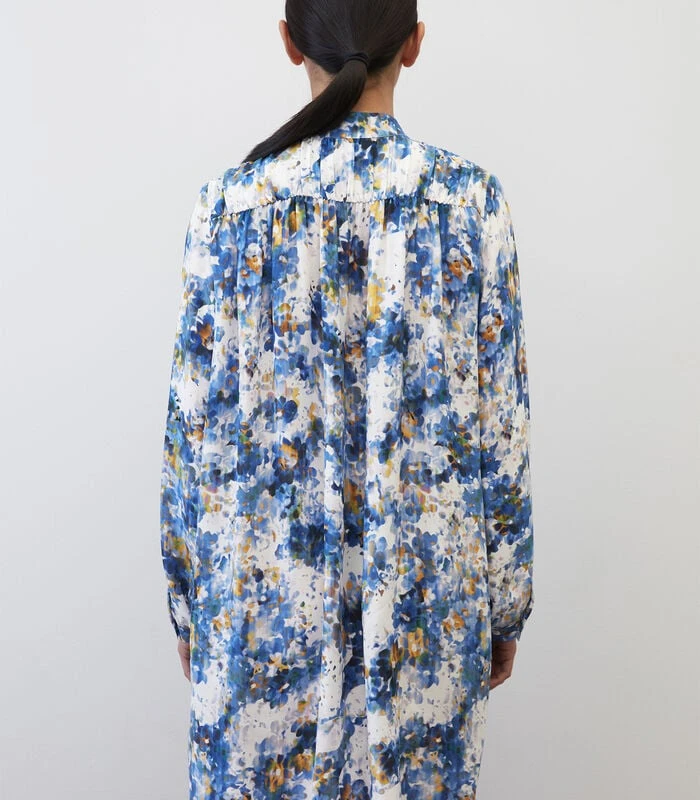 Heeft de ideale lengte voor kantoor, gewoon elke dag en het strand: zeer losjes vallende en wijde overhemdjurk met opvallende plooidetails aan de voorโ en achterkant. De knielange jurk met opstaande kraag heeft een doorlopende knoopsluiting aan de voorkant, casual volumineuze mouwen met smalle zoom en twee handige in de zijnaad weggewerkte steekzakken. Dankzij het luchtige model en de exclusieve stof van viscose en cupro kan de jurk de hele zomer door worden gedragen.