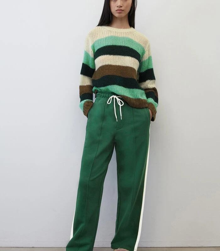 Staat voor exclusief, aangenaam draagcomfort: de jersey broek met een stijlvol trainingsdesign. Coole, minimalistische look met elastische band met tunnelkoord, metalen oogjes en rond, lang koord. Met handige omboorde steekzakken aan de voorkant en een opgestikte achterzak. Bijzonder: de streep opzij in een contrastkleur. Casual look: combineer met een gestreepte gebreide trui en kort bomberjack. De stof: een zware, minimalistische en zeer zachte sweatstof met enzym–wassing.