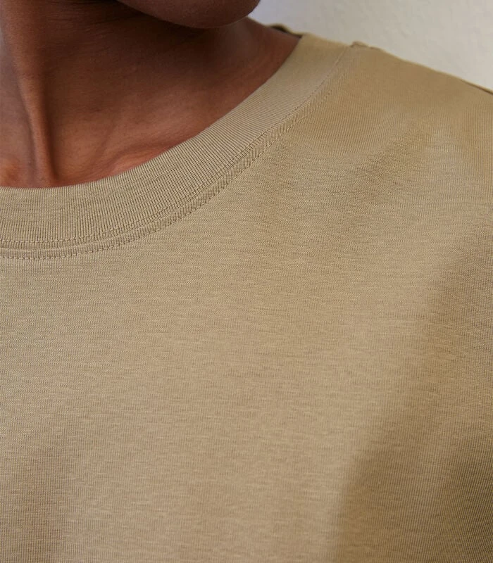 Perfect als basic: het T–shirt is de meest casual allrounder van het nieuwe seizoen. De modeklassieker heeft een lange traditie en gaat dit jaar de volgende moderonde in. Ons model is gemaakt van jersey van het allerfijnste geribde, zuivere en gemerceriseerde katoen en heeft een klassieke ronde hals, oversized schouders, casual 3/4–mouwen en rechte zoomboorden.