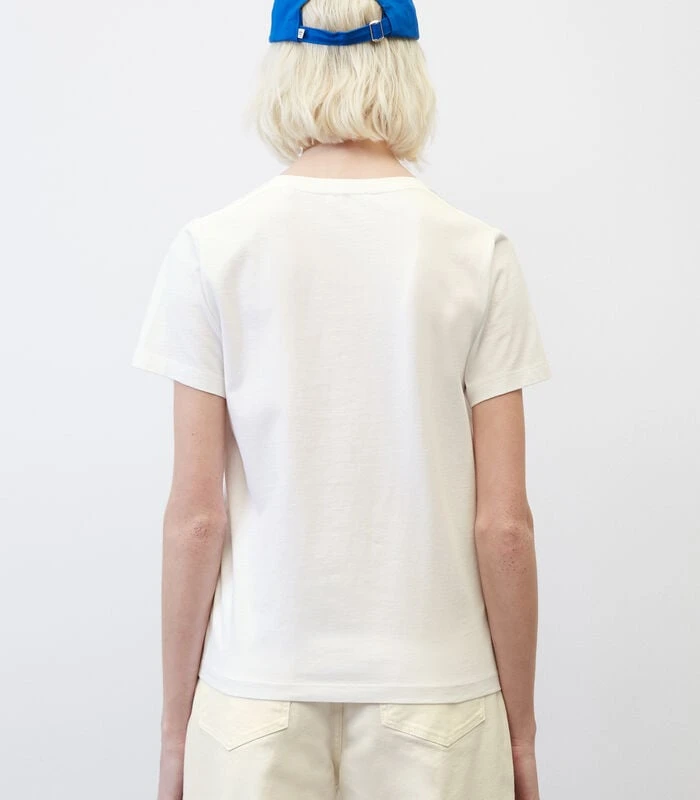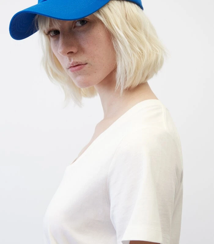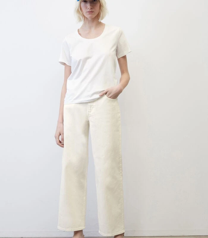 Een nieuw model zorgt voor een casual–chique look bij de basic T–shirts en heeft een supermodieuze uitstraling: de relaxte loose straight fit. Dit T–shirt onderscheidt zich duidelijk door de mooie snit, het hoge draagcomfort en de lage ronde hals. Het model is gemaakt van zuiver, hoogwaardig organic cotton en heeft casual, halflange mouwen. Het bijzondere: het T–shirt is supereenvoudig te combineren en kan elk seizoen worden gedragen.