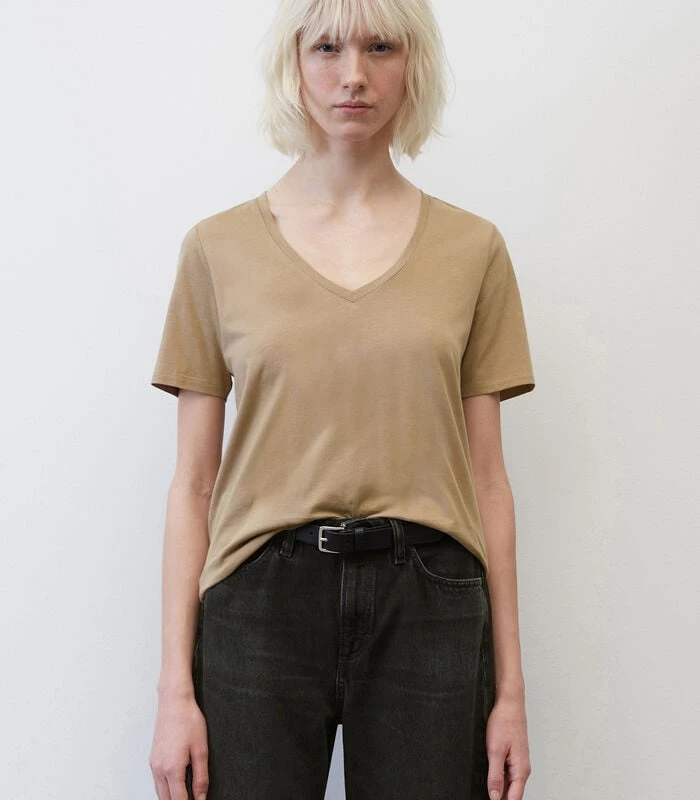 Minimalistisch, Scandinavisch, met een vrouwelijke charme en de perfecte mix van cool, chic en sportief: casual Tāshirt van zuiver, GOTSāgecertificeerd organic cotton. Losse regular fit met een lage Vāhals, korte mouwen en een klassieke zoom. Modern, tijdloos, uitermate stijlvol model dat veelzijdig te combineren is.