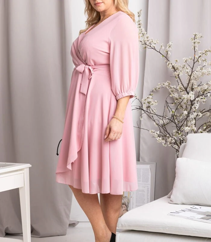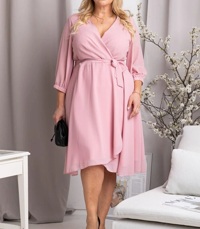 De NATALY–jurk is de essentie van vrouwelijkheid en delicatesse. De perfecte snit voor XXL–vrouwen die hun sterke punten willen laten zien en minder geliefde lichaamsdelen willen bedekken. De delicatesse wordt benadrukt door licht en luchtig chiffonmateriaal, dat prachtig bij het lichaam past. Aan de andere kant wordt vrouwelijkheid benadrukt door de perfect genaaide omhullende halslijn, die de nek slanker maakt en de buste benadrukt. Het geheel ligt prachtig en egaliseert de verhoudingen van de figuur. Perfect voor werk of uitgaan met vrienden. NATALY is een zeer klassieke plus size jurk, perfect om te stylen met hoge hakken en een leren ramones jack. Je zult je er heel speciaal en energiek in voelen. De originele print trekt de aandacht en geeft zelfvertrouwen. Om alledaagse stileringen te diversifiëren tot een comfortabele jurk die zeker niet in de kast zal hangen. Als je de adem van de lente al voelt, kan het niet ontbreken in je styling.
