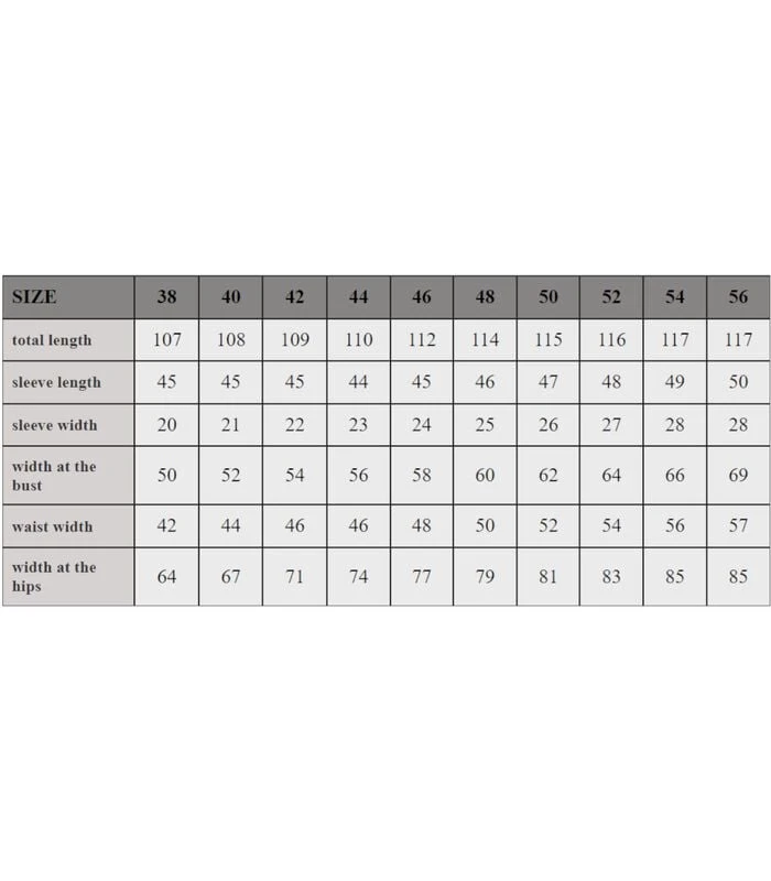 | Maat | 38, 40, 42, 44, 46, 48, 50, 52, 54, 56 |