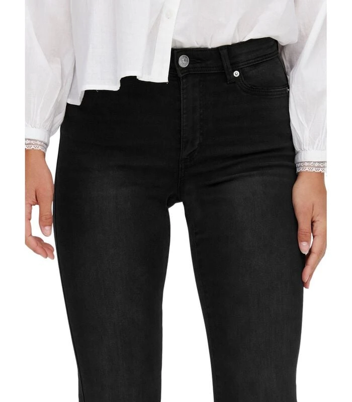 â Pasvorm / Type : Flared fit jeansâ Taille : Hoge tailleâ Stof : Gemaakt van highâperformance extra stretchy denim voor dat nextâlevel feelâgood comfortâ Wash : Washed black denimâ Gulp : Ritsâvliegâ Benen : Volledige lengteâ Pocket anders : Klassieke fiveâpocket stijlâ Lengte : Binnenbeenlengte is 86 cmâ Model : Het model draagt maat S/34