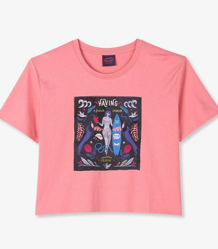 • T–shirt uit zacht katoen, ronde hals, korte mouwen, brede en korte snit