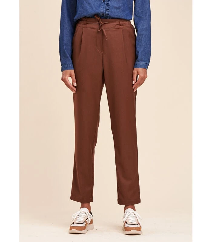 Elastische tailleband broek met striksluiting, Italiaanse zakken aan de voorzijde en een klein paspelzakje aan de achterzijde.Dit model heeft een normale maat, neem uw gebruikelijke maat. 63% Polyester 34% Viscose 3% Elastaan