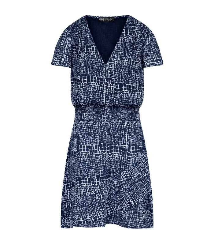 De TAÏPAN jurk belichaamt de zomersfeer van het moment. Het model met imitatiepallet en de gesmokte taille geven uw silhouet een subliem accent.