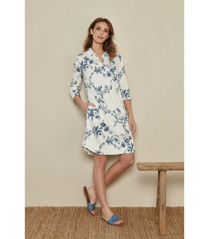 Witte Hemdsjurk Met Blauw Bloemenmotief